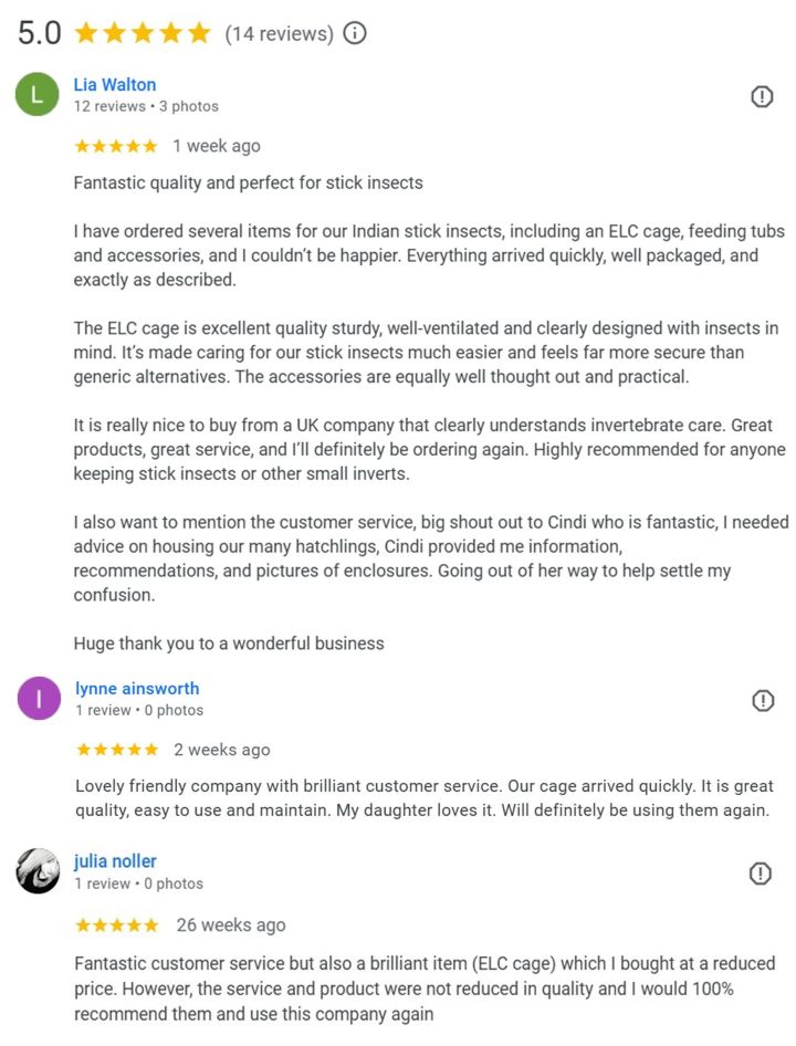 Just to say I got my stick insects this morning and they are perfect. The ELC
