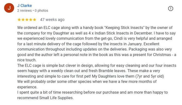 Small-Life Supplies gets 5 star reviews,